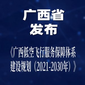 为加快广西通用航空发展,完善低空飞行服务保障体系,近日,自治区交通运输厅印发关于《广西低空飞行服务保障体系建设规划(2021-2030年)》(以下简称《规划》)。
